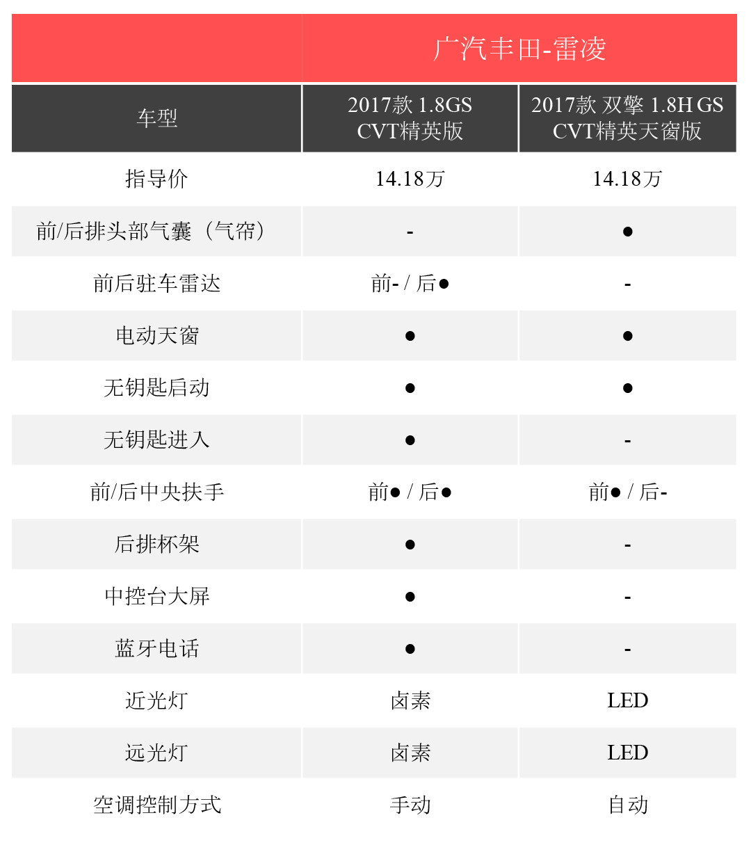 为了能够更加直观看出来我们选择传统燃油车与油电混合车型分别能够得到什么,教授直接拿出指导价完全相同的雷凌1.8L与双擎进行对比。