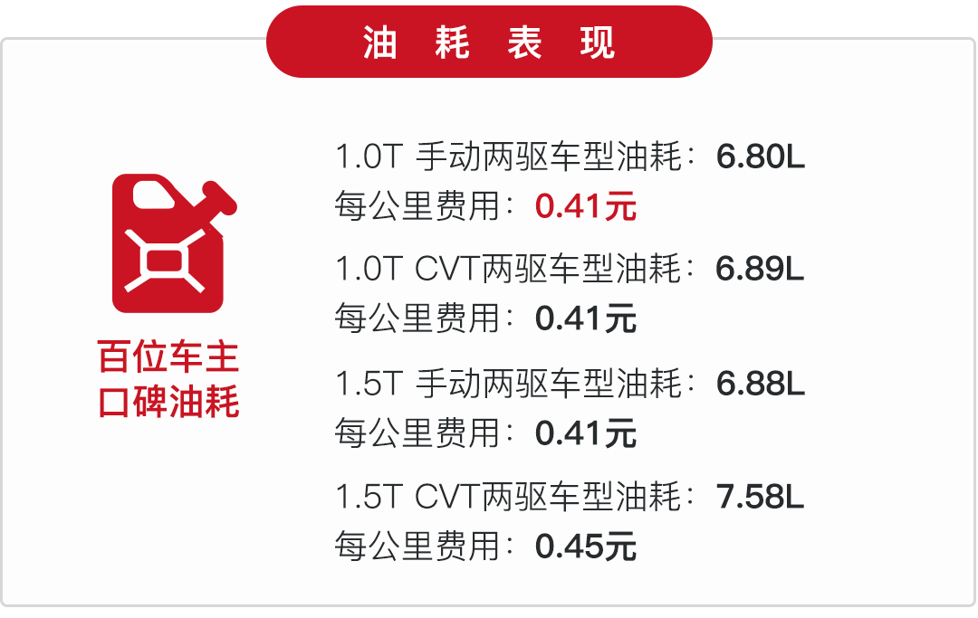 与两款发动机匹配的是6MT和CVT变速箱,MT变速箱就不必多说,乃是公认的省油利器。至于CVT虽然有液力变矩器来消耗一部分动力,但凭借无级可调这个特性,总能在每个速度下找到最佳转速来保证油耗表现。