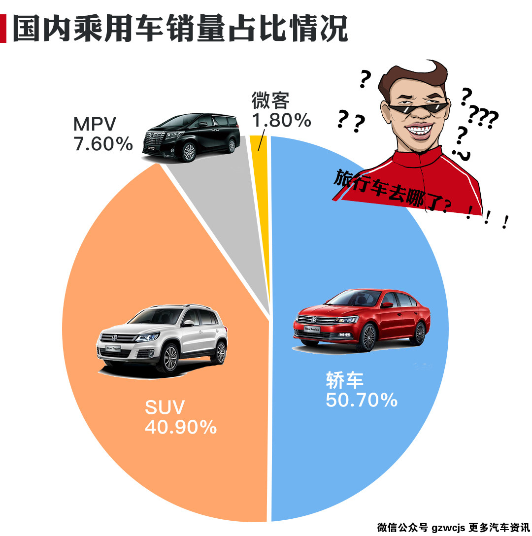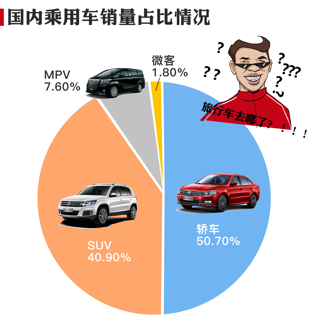SUV的火热程度想必不需要叫兽多费笔墨,大约从2012年开始,国内汽车市场里SUV的销量占比一路走高,如今已经能够稳定保持在40%以上,几乎与轿车形成平分乘用车市场的态势。而其它几类车系,除了MPV能稍占一定份额外,旅行车于国内就是夹缝中求生存的状态。