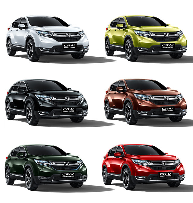 新车提供了6款颜色,从左至右从上至下分别是,珍珠白,珠玉黄,彩晶黑、琥珀棕,赤霞红(240TURBO版专属),翡玉黑(Hybrid版专属)。