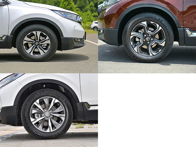 轮毂方面的选择比较少,从左至右从上至下分别是,17寸,18寸和18寸混动版版的轮毂。其中18寸轮毂只有1.5T的尊贵版及尊耀版有配备,其余的1.5T全部配备17寸轮毂。而混动版的则全部配备18寸的混动版专属轮毂。