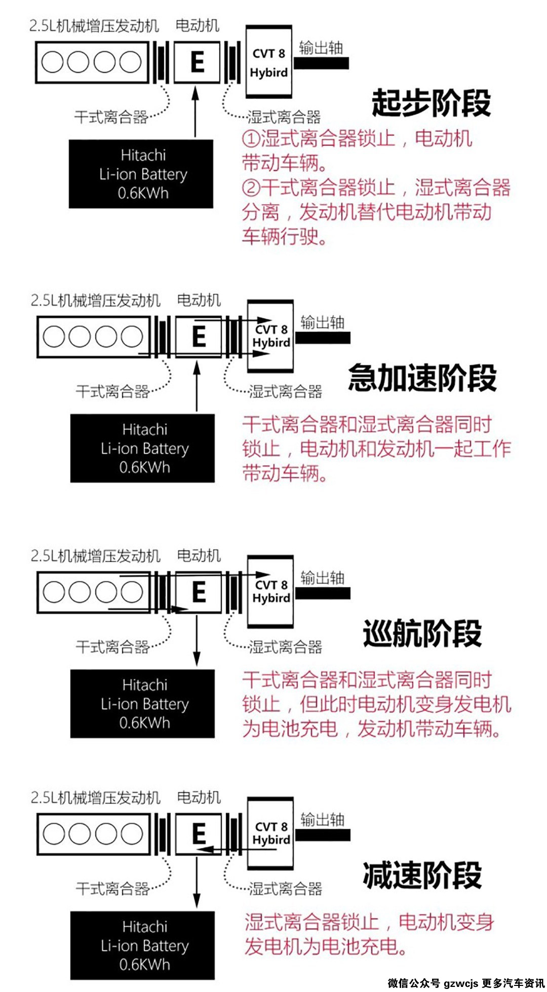 这在不少人看来,这套混动系统更像是一个“十分钟男人”还没两下就缴械投降了,但在教授看来我却由衷欣赏(十分钟很长了好不好)。因为这套系统的结构非常不错,首先楼兰混动版采用的是两离合结构(不是双离合),分别装在电机两边,一边连发动机,引入发动机动力,一边连变速箱输出动力。