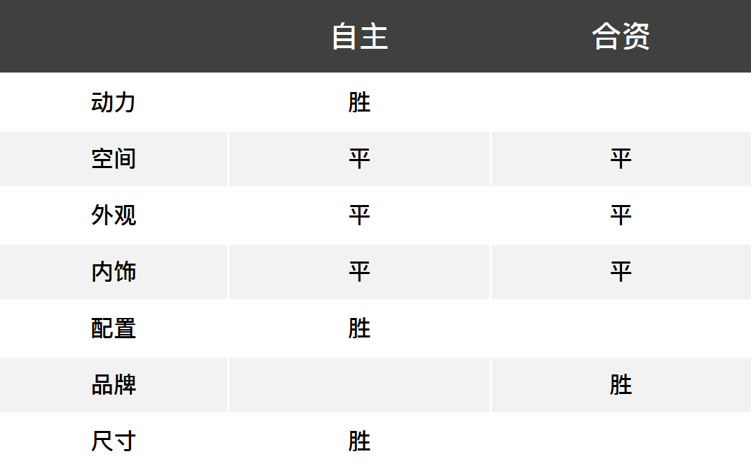 因此,从10万到13万再到20万的对比,我们能够发现自主车型与合资车的PK慢慢地变得有意思起来,在低价位市场,合资车由于售价太低,因此偏科严重,往往是只能保留一点机械水平上的优势,而在其它方面表现完败,这时候选择自主车型往往才是更靠谱的,而13万的紧凑型车市场里合资车与自主车型也只能是勉强打个平手,这里多说一句,在13万左右的轿车市场几乎是合资车垄断,而13万的SUV市场则是自主车的天下;而一旦来到高价位20万左右,合资车开始全力造车时,自主车则显得有些疲软,到了这个价位,显然选择合资车还是更加靠谱一些。