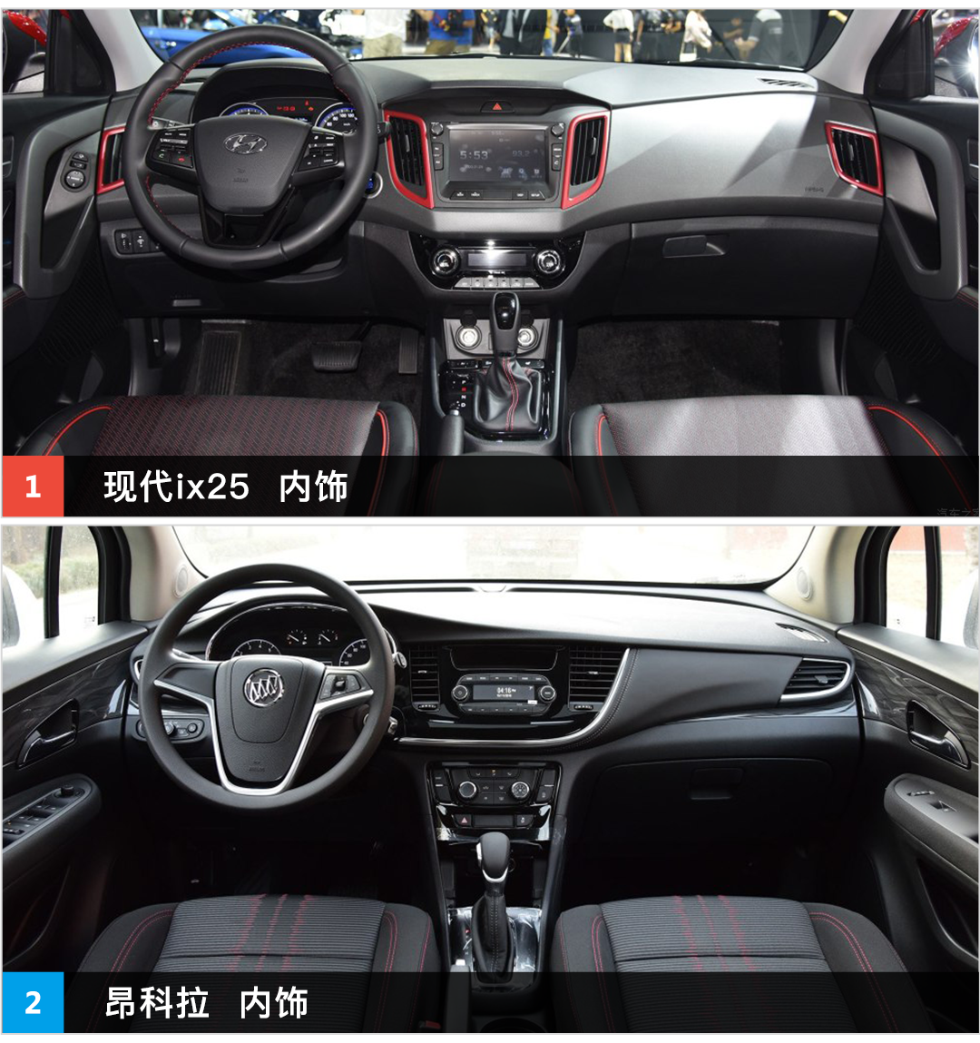 内饰:现代ix25设计更时尚,但昂科拉质感更佳