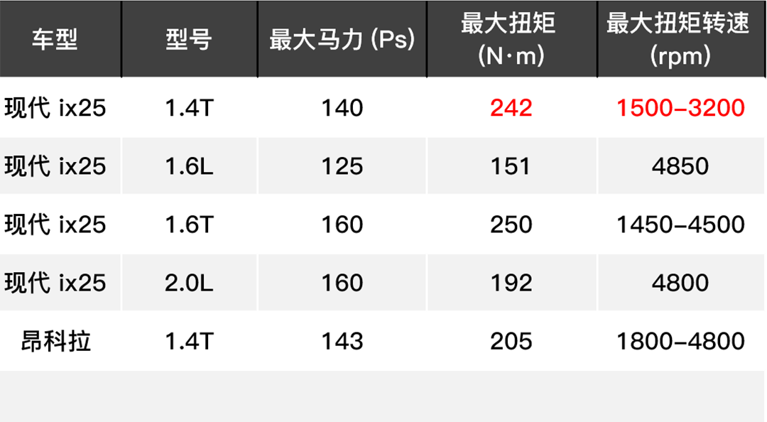 昂科拉全系搭载1.4T发动机,匹配6挡手动以及6挡手自一体变速箱,而现代ix25的动力选择更加多样化,新款搭载1.4T、1.6L发动机,变速箱有6挡手动、6挡手自一体、7挡双离合三种选择。
