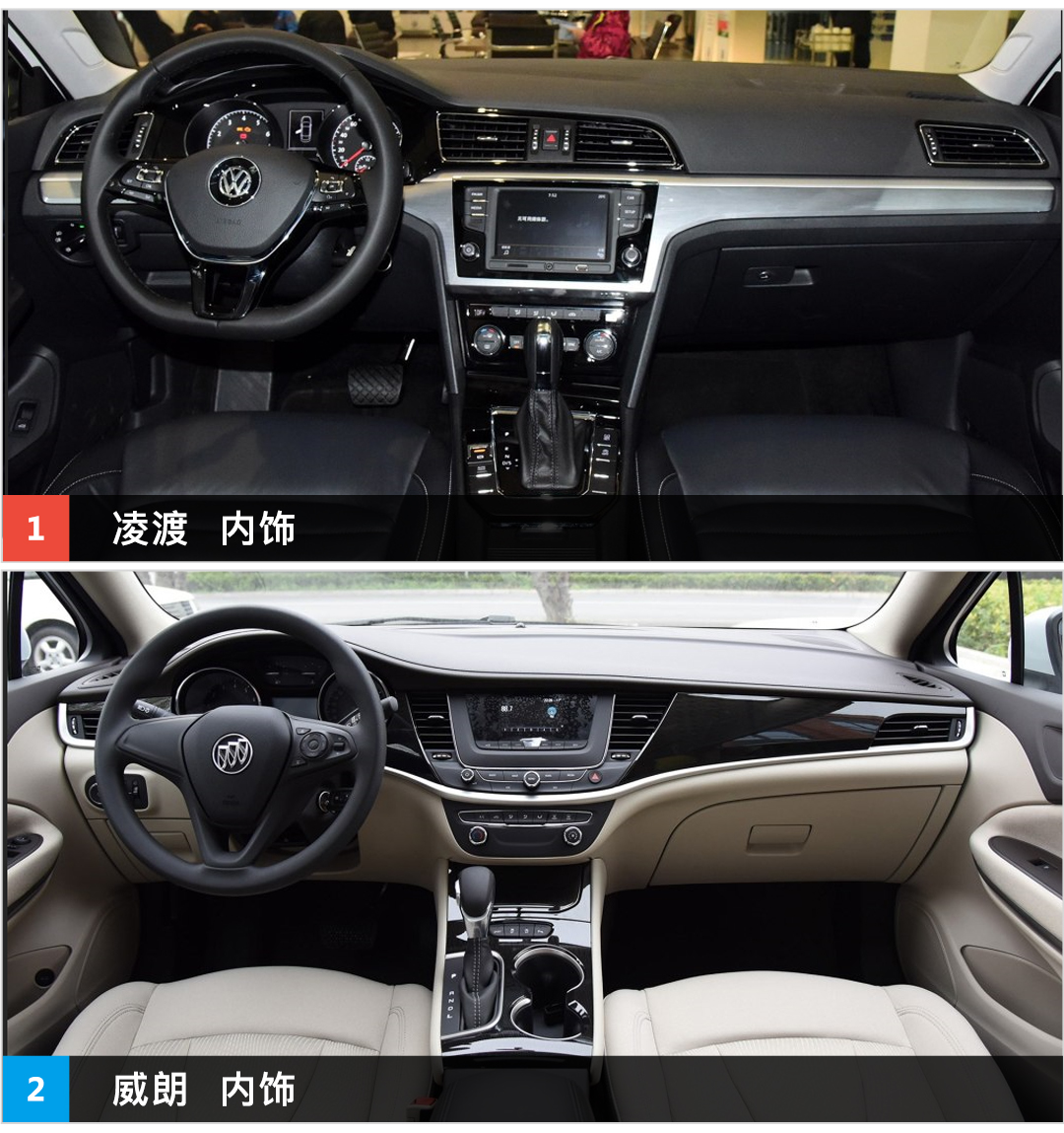 威朗在外观上很好的诠释了运动的风格,但内饰却是满满的豪华感,有一种君越的即视感。凌渡则是贯彻了大众一向的简约风格,并没有太大的亮点。两车的用料都不错,中控台都采用了大面积的软性材质,但别克对于豪华感的营造实在是太擅长了,无论是设计感还是用料,威朗都要稍胜一筹。