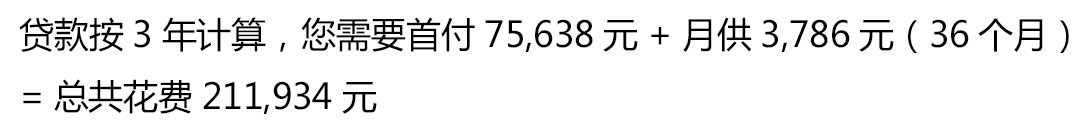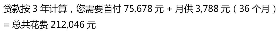 如果选择贷款买车,需要交首付75638元,每个月还需要交月供3786元,并没有与思铂睿在月供上有太大的区别。所以结合上面的费用每个月所需费用5237元。但是根据4S店提供给我们的优惠来看,这款车型优惠幅度在1.5万左右,所以每个月的所需费用有望降低。