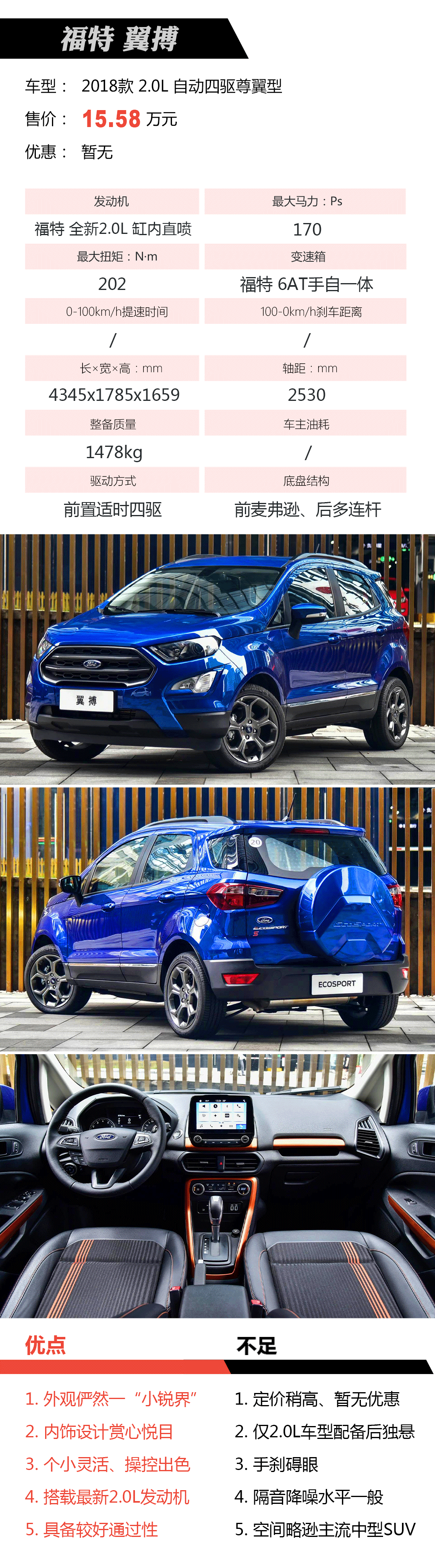 改款后的翼搏摆脱以往憨厚敦实形象,俨然一副“小锐界”的精致嘴脸。最新2.0L自吸发动机(账面数据赶超丰田6AR-FSE)、6AT变速箱加入、配置水平升级、城市四驱系统,堪称最强翼搏,从翼搏装配福特性能车标志性的花瓣造型轮毂便能窥探一二。