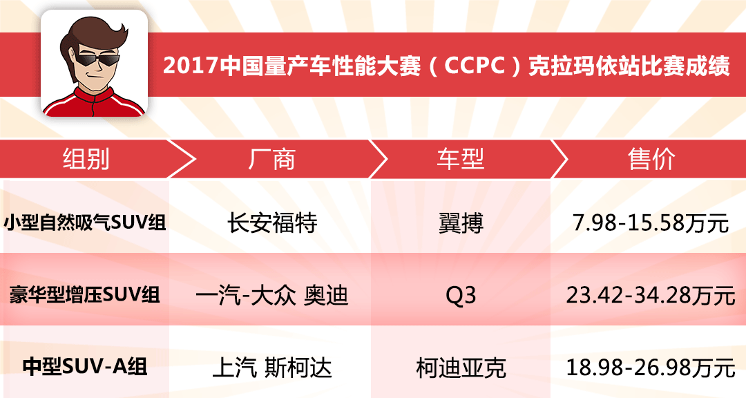 以下这份SUV组的成绩单,