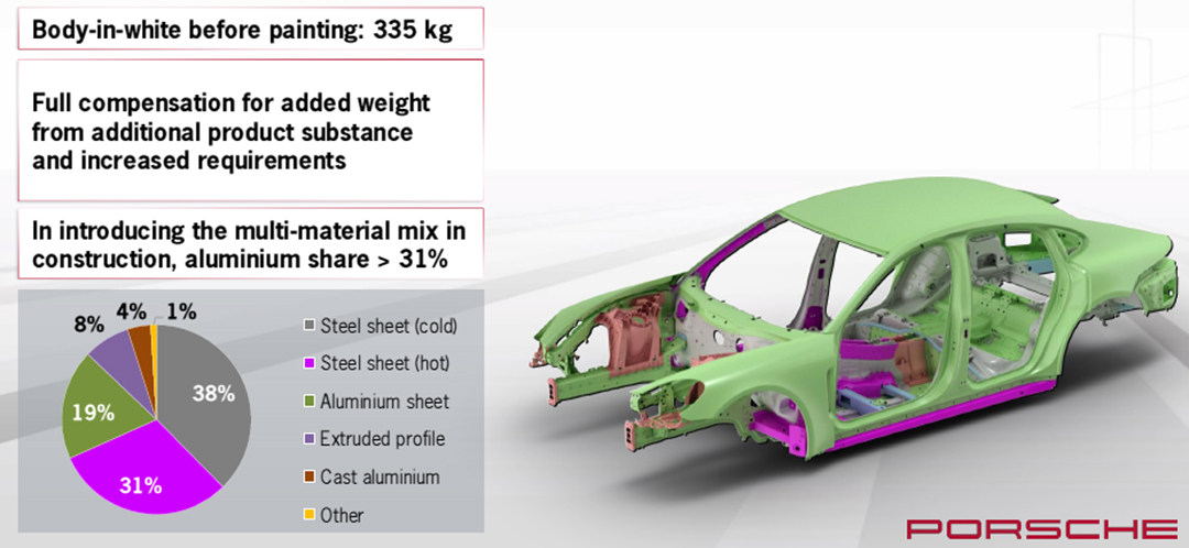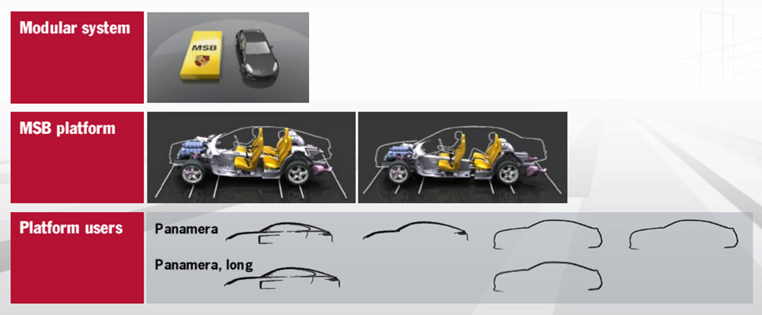 新一代Panamera采用了保时捷MSB平台制造,除了长短轴距版本的Panamera以外,和宾利、奥迪A7等也共享车架设计。