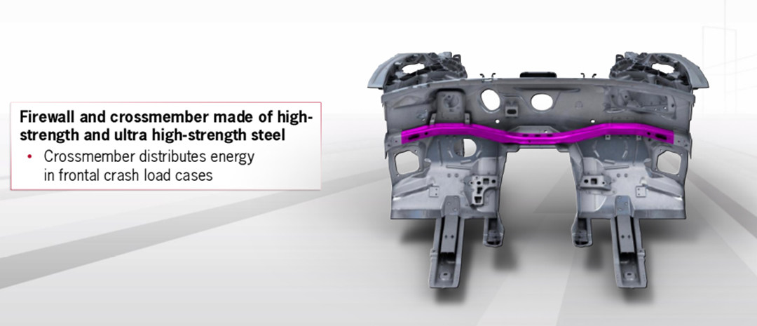至首次使用超高强度的硼合金异型钢管加强车体防火墙部分,以更少更坚硬的结构和材料提升碰撞刚性。