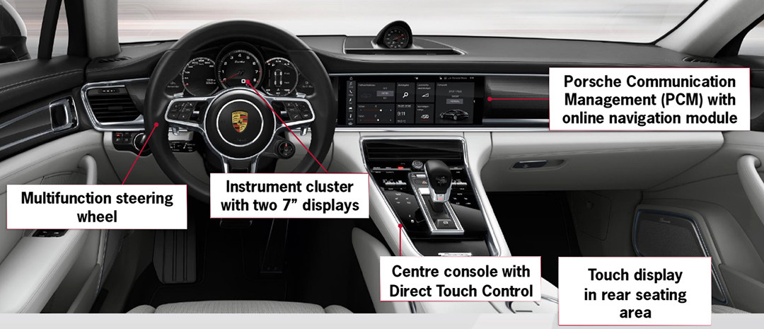 上一代的Panamera的座舱以按键布局奇葩著称,新一代的Panamera终于使用了液晶触摸屏,整体设计比前代更简洁。 仪表部分为了保持跑车感,除了转速表依然使用机械式仪表以外,其他部分均液晶化并支持触摸操作。而同时提供液晶触摸屏体验的还包括中控和后座部分。矩阵大灯、夜视系统、按摩座椅、车道偏离等配置已经在其他品牌的豪华房车上相当常见,作为保时捷Panamera上的首次,总算追上了豪华房车的配置主流。当然,追求豪华之余不放弃保时捷的性能特质,这才是Panamera最大的卖点。
