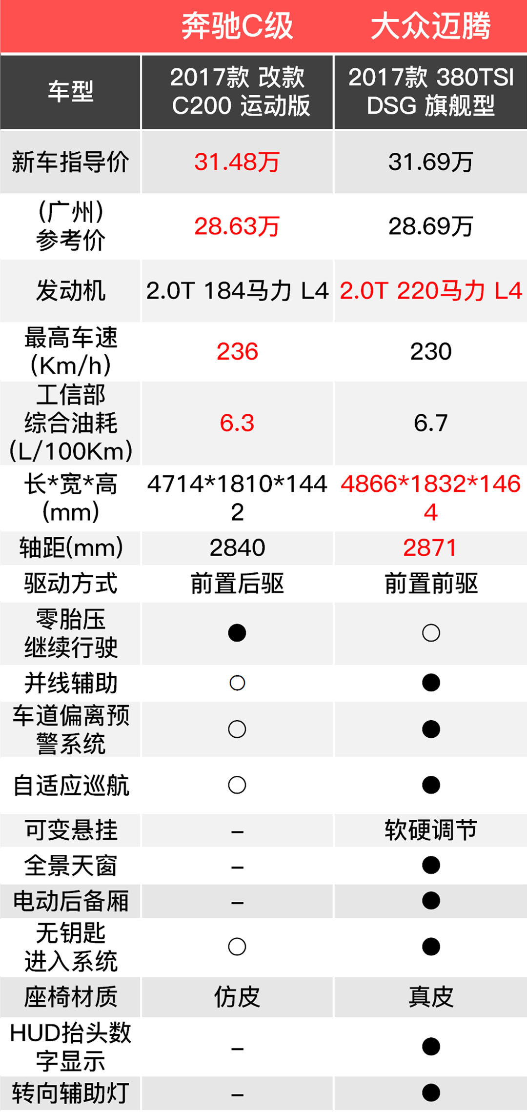 既然价格相差不多,小虎与很多消费者产生同样的疑问,究竟是选择奔驰 C200运动版的低配还是选择大众迈腾的顶配才是最具有性价比的选择?除了外观和内饰看个人的喜爱度以外,我们就先从配置进行对比。