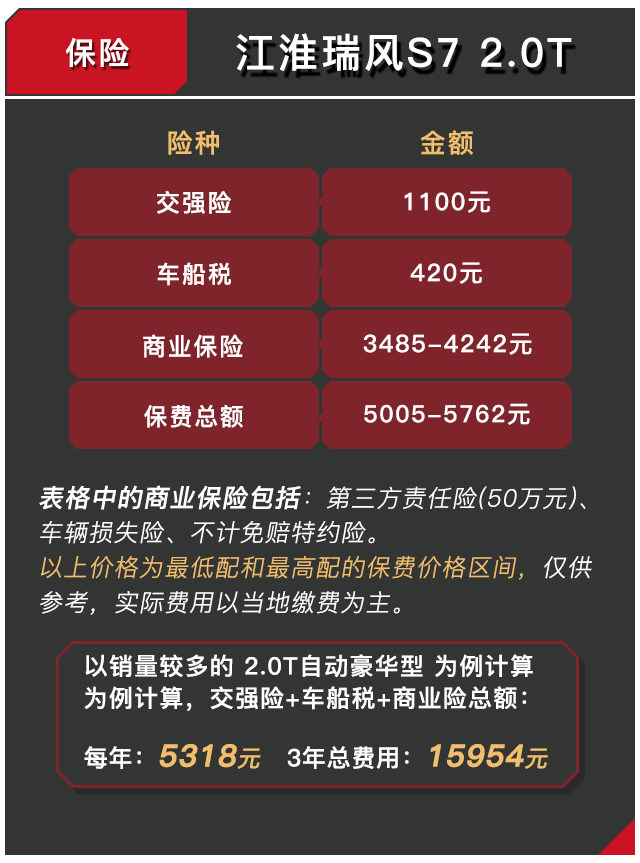 取费用高的自动挡车型算,对比下来一年的保养费用不到两千,这个价格也算中等吧,油耗也一般般,所以一年下来总费用就接近两万了,这个水平总的来说还算中等,但是瑞风S7的配置非常丰富,空间也大,虽然养起来不是非常的实惠,但是看在这性价比,相信还是能接受的。