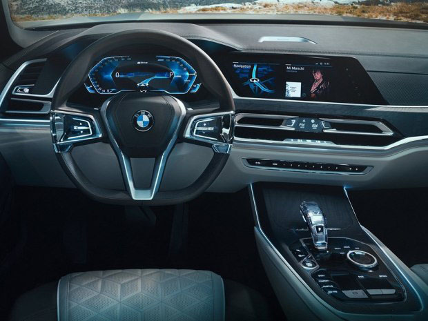 内饰方面,从方向盘还有空调区域的地方上看,我们能够看到这一代宝马内饰设计的影子。宝马X7 iPerformance Conecept上的一切变得更加修长,比例更加夸张。当然,如果生产后,我丝毫不会怀疑它会使用跟现款完全一样的造型。