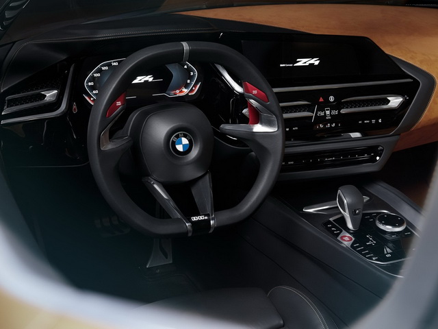 在内饰方面,Z4的方向盘取消了与驾驶无关的按键,只剩下换挡拨片,在方向盘底部的计时器不知道是用来计算跑圈还是计算加速时间的。仪表盘方面则使用了全液晶显示,有左侧区域显示时速,右侧显示转速。