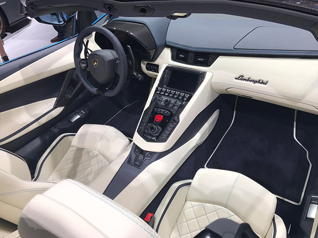 车身侧面基本跟Aventador S保持一致,有棱有角的线条同样是非常具有力量感,并没有什么改变。至于车尾部分,新车采用的是中置三出排气布局,并且尾部的黑色扩散器可提供碳纤维材料,主动式后尾翼也可以根据车速和驾驶模式进行三种位置的变换。