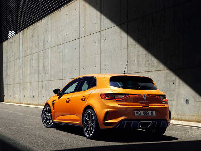 车侧线条感十分硬朗,并且动感十足。车尾部分,梅甘娜R.S.采用了全新的宽体包围设计,再搭配上夸张的后扰流板,排气系统依旧延续了中置布局,底部的黑色扩散器以及两侧侧导风口都突出了它的暴力。