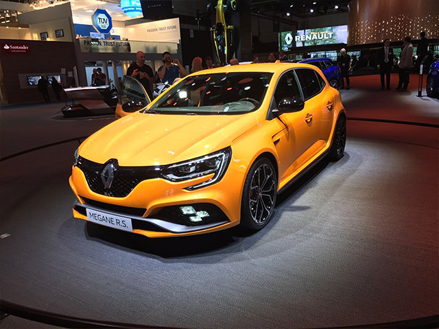 在钢炮界,雷诺梅甘娜RS是最具代表性的,毕竟曾经也拿下过“纽北最速前驱车”的称号。在2017法兰克福车展期间雷诺发布了梅甘娜R.S.,新车采用了雷诺最新的家族式设计,外观方面基本延续了梅甘娜GT的造型设计,只是在很多细节处发生了变化,前脸的黑色网状格栅面积加大,贯穿中网的黑色镀铬条与大灯连接,并且中网下方佩戴着“R.S.”标识。大灯的造型经过了重新设计,并有一条犹如泪痕的灯带延伸下来。保险杠造型被设计得尤为夸张,并且在两侧雾灯区配有三颗呈格子旗状分布的LED灯组,大大提升了前脸的整体视觉效果。