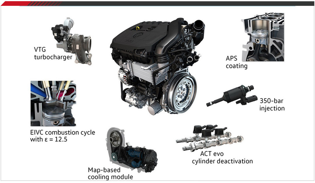 海外版本搭载的是最新的1.5T TSI EVO发动机,这是一款用作代替1.4T发动机的产品,性能提升没有很大,但油耗却降低很多。毕竟新一代发动机有不少强悍特性,如可变截面涡轮增压器、超高压缩比以及喷油压力、气缸管理技术等。