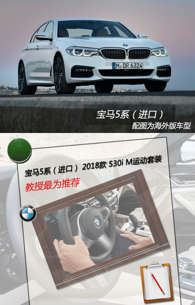 三厢版本车型教授最为推荐的是2018款 530i M运动套装(售价54.98万),旅行版本车型教授最为推荐的是2014款 528i 旅行版(售价65.6万)。