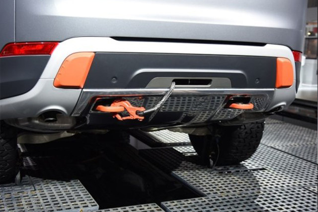 新车采用了新样式的双五辐轮圈,增加了灰色侧裙、橙色翼子板装饰,同时采用了黑色车顶以及加装了行李架。该车尾部配备了橙色的原厂绞盘以及拖车钩,极大程度的增加了野外脱困能力,前后保险杠处采用了更大尺寸的防擦护板,其中还加入橙色元素点缀,并且车尾右下方贴有“SVX”专属标识。新车为了得到更好的越野通过性升高了底盘高度,在轮胎方面也配备了固特异全地形轮胎,规格为275/55 R20。