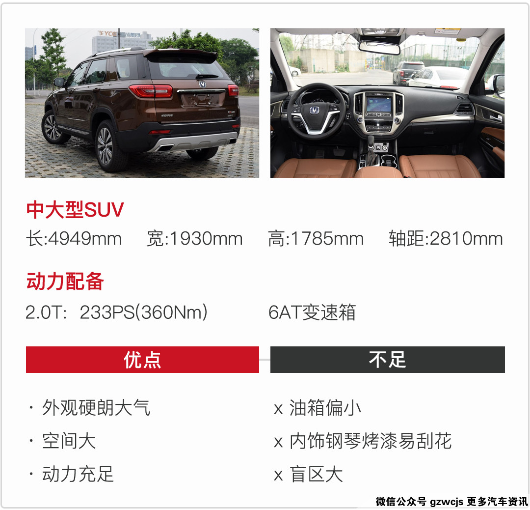 动力方面,CS95搭载了“蓝鲸”2.0T涡轮增压发动机,这台发动机是长安汽车完全自主研发,国内最强的发动机,参数完全领先同级,峰值扭矩可达360Nm,匹配爱信的6AT变速箱也让人很满意。总体而言,这套动力总成的动力输出基本可以媲美合资品牌,没有合资情结的话值得考虑,性价比好太多了。