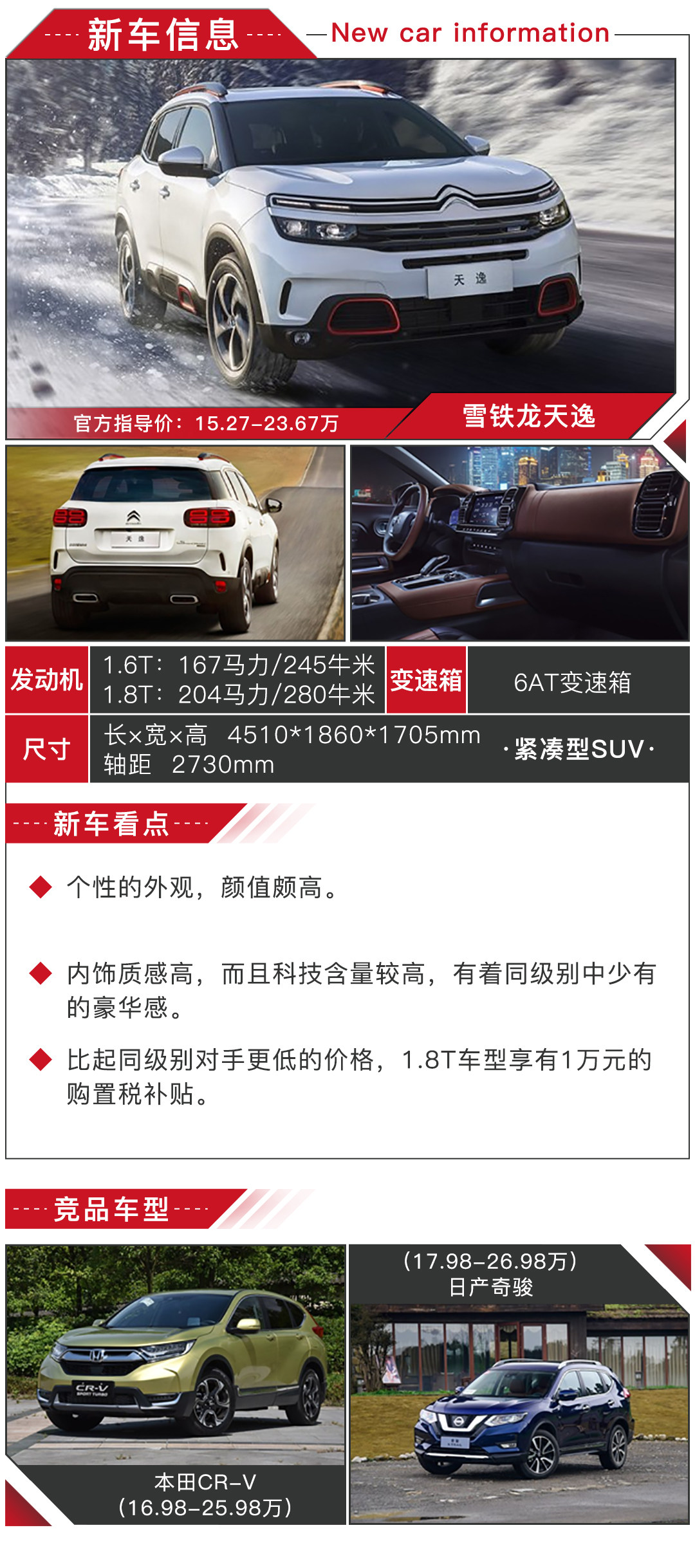 总归一句话,“17万以下唯一能买到轴距超过2700mm的合资紧凑型SUV,而且还具有高内饰质感的优点”。就这预算,想要不选择雪铁龙天逸都是一件困难的事情。