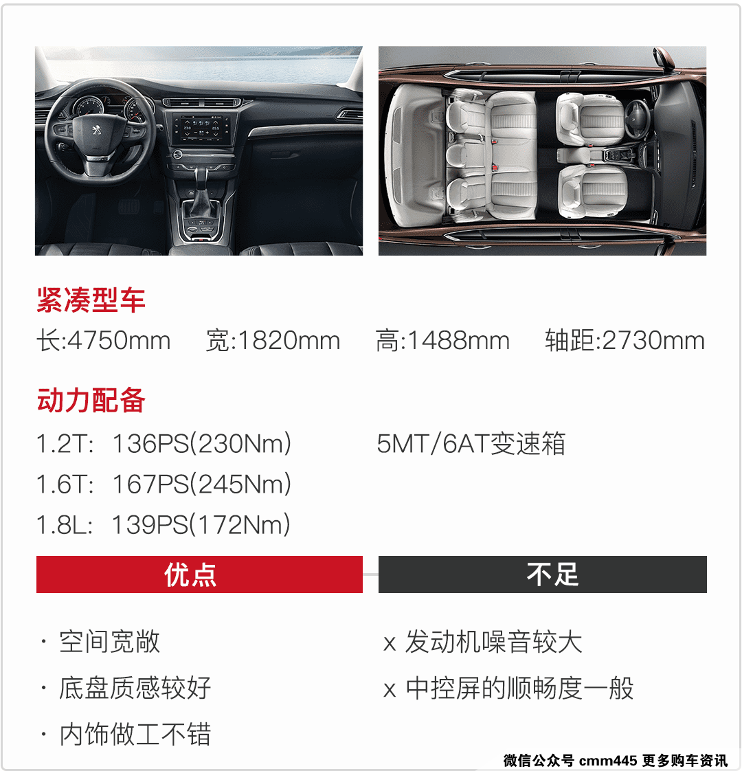 标致408承担了它这个级别不该有的尺寸。说人话就是它是一台偏大尺寸的紧凑型车,能带来宽敞的空间。而且有着相对韧性的底盘调校,就连女司机都能轻松驾驭。
