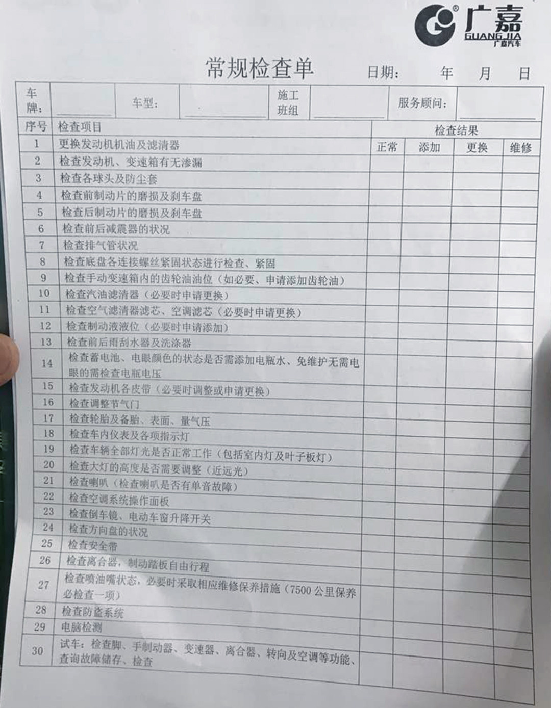 首先是30项汽车,每项完成后工作人员都会在后面标注,如果日后有问题客户可凭检查单来讨说法,这也算约束了工作人员的细心程度。与4S店检查服务一致,比一般的快修店好。