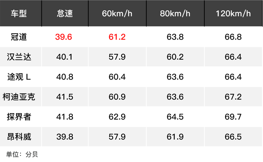从上表中我们可以看出冠道在怠速以及低速时甚至可以与静音水准有口皆碑的昂科威比肩,虽然高速时噪音会有所上升,但是整体隔音效果还是很不错的,它的多级降噪处理使它一改本田粗犷的形象,转型为一位绅士。
