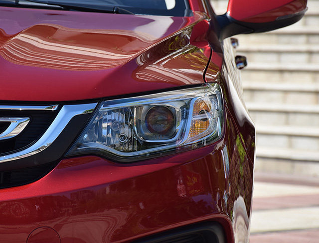 前大灯配备了该级别车型常见的卤素光源,这点无可厚非。远近光一体式的设计并带有自动感应开启功能 ,配合反光镜,拥有更佳的照明效果。大灯内部采用了镀铬包围妆点,灯眉部分与镀铬中网精准匹配,细节上的设计很到位。