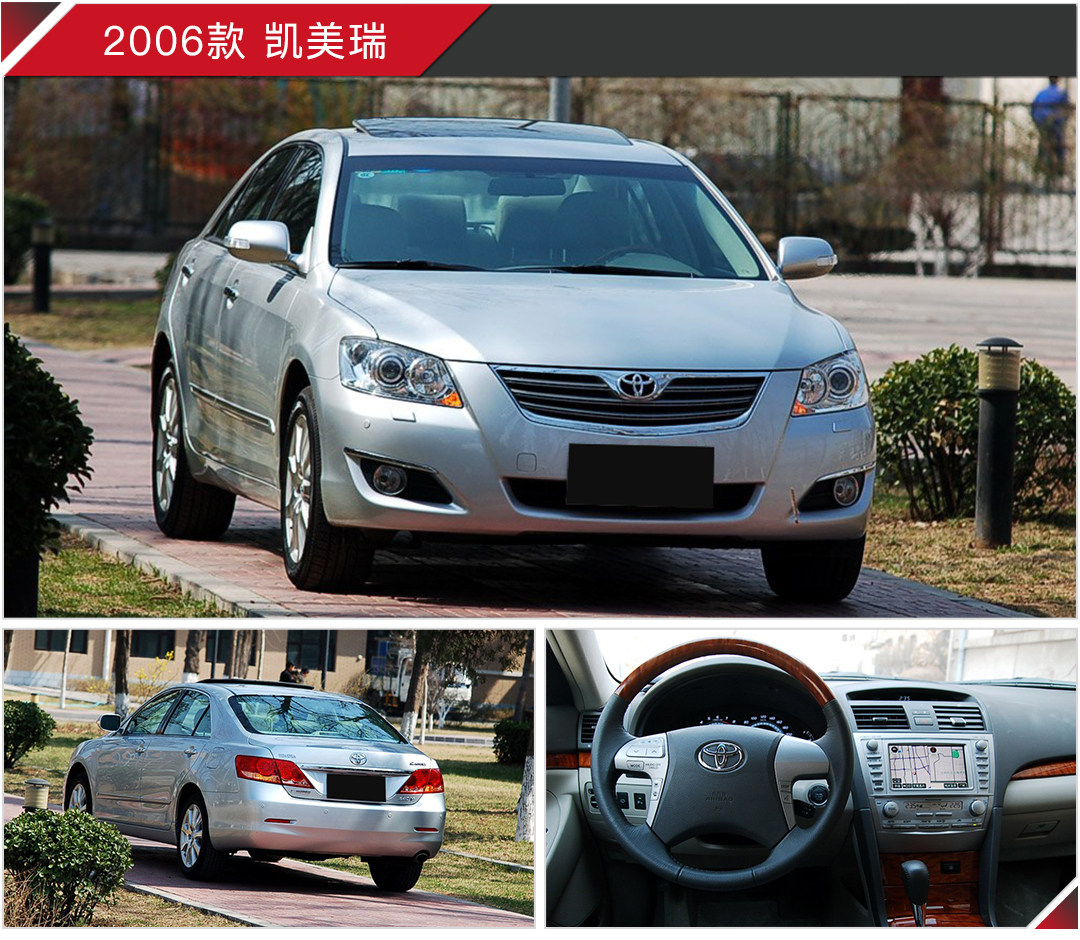 首先是来自日本的代表,2006年上市的第一代国产凯美瑞(XV40),在国外它是第六代车型,名字从“佳美”换成了“凯美瑞”,当年它可谓是叱咤风云,简直就是广东地区的公务用车代表。