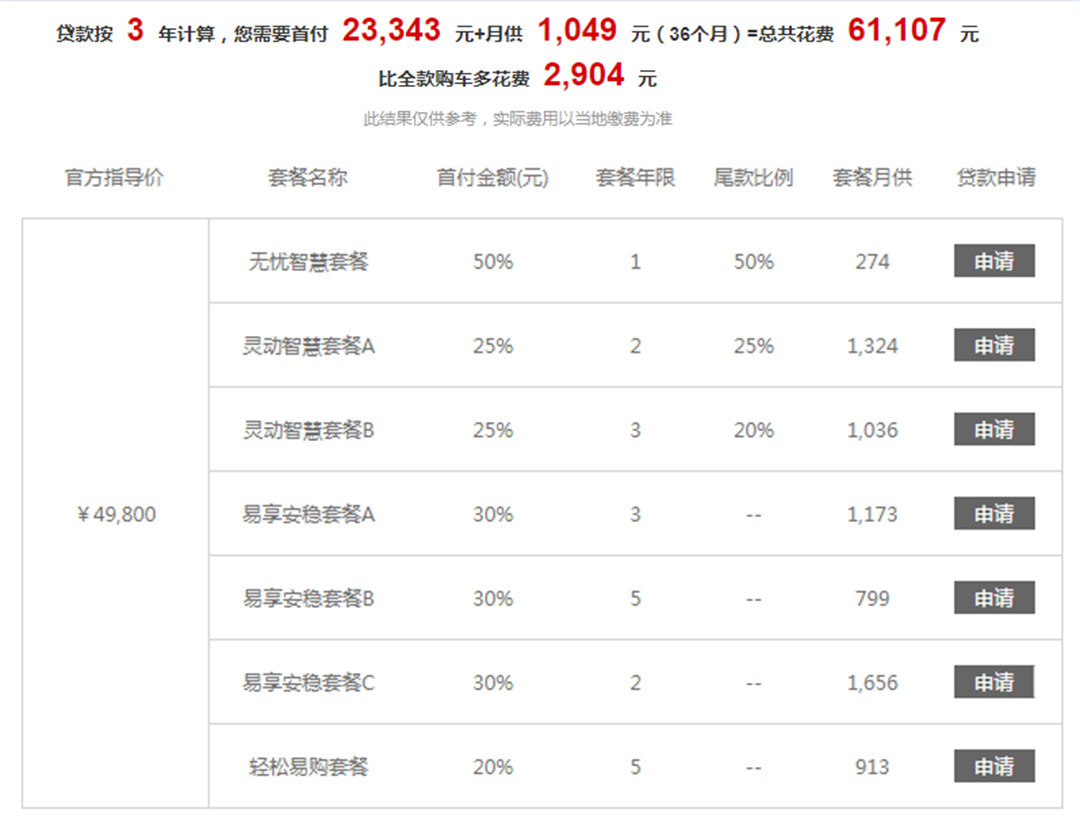 当然车价低的好处也是它的首付也比较低,以1.2L豪华版车型为例,采用常规的贷款套餐来计算,其实也是2万多的首付,而且目前厂家也给出了不少的贷款优惠方案,譬如无忧智慧套餐、轻松易购套餐等,都是能够大幅度降低首付的有效方法。