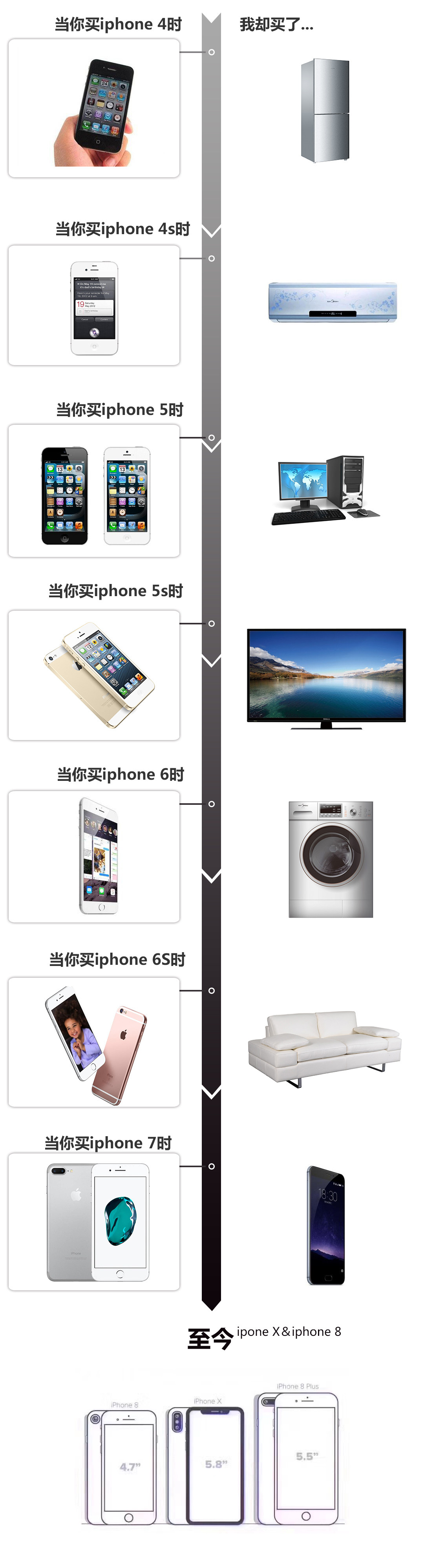 当你拿着旧苹果手机换不锈钢脸盆的时候,我可能拥有了冰箱、空调、洗衣机、电视机、电脑、新手机、甚至是...小汽车,所以真的有必要去追新的水果手机吗?答案是:否定的,毕竟每一位消费者的消费水平以及价值观念都会有所不同,而教授所列举的例子也仅限娱乐,到底应该买什么?喜欢上的东西,该出手时就出手吧!
