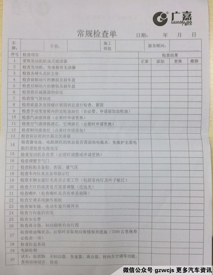 技师向教授介绍,在嘉实多护车保养站做保养,除了更换机油机滤以外,还会对车辆发动机、变速箱是否渗油漏油,制动系统,减震器等重要部件进行检查,并随时向车主反馈车况。教授看了常规检查单,多达30项检查可比部分4S店还专业。