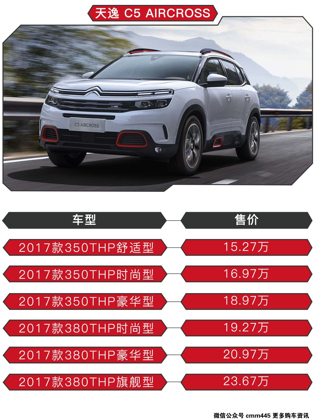 法国人的浪漫主义除了体现在红酒、巧克力和奢侈品上以外,设计独到,天马行空的法系车同样也是法国设计师特立独行一面的绝佳诠释;东风雪铁龙天逸SUV C5 AIRCROSS(下文简称“天逸”),注定是一款小众的选择,然而前不久正式上市的它以15.27—23.67万元的售价却似乎在以较低的价格极力走进更多人的视野,甭管你对它是爱与恨,你总得知道购买哪一款更划算。