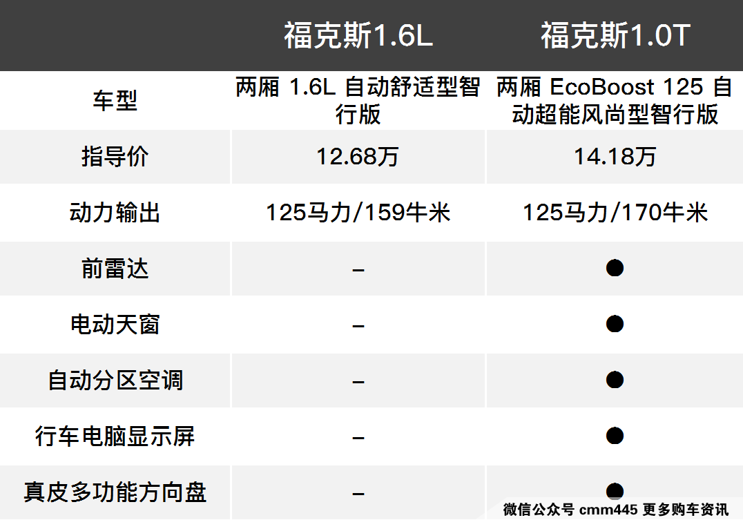 福特的这套1.0T发动机怎么说也获得过十佳发动机,技术方面是ok的,关键优势在于动力和1.6L差不多,但油耗会有更好表现。所以,如果你更在乎油耗,或者是一个环保人士,那么福克斯1.0T还是可以考虑一下的。