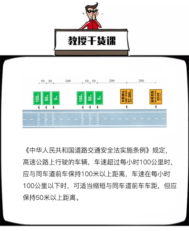 在每条高速上都有一个最高限速和最低限速,并且每条车道的车速范围也是不一样的,我们应该把车速控制在规定的范围之内,保持车距行驶。