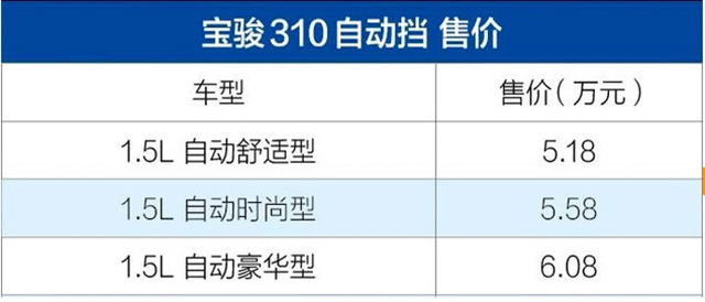 但在购买小型车的群体当中,有不少是刚拿到驾照的新手司机和女司机,他们更偏向选择自动挡车型。今天,宝骏310正式推出了3款1.5L自动挡车型,售价为5.18-6.08万元,弥补了310车系中没有自动挡车型的遗憾,为预算不高的工薪阶层提供了更加具有性价比的选择。