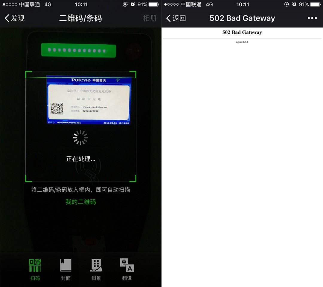 这个叫中国普天的充电桩,教授没卡,唯有扫二维码呗