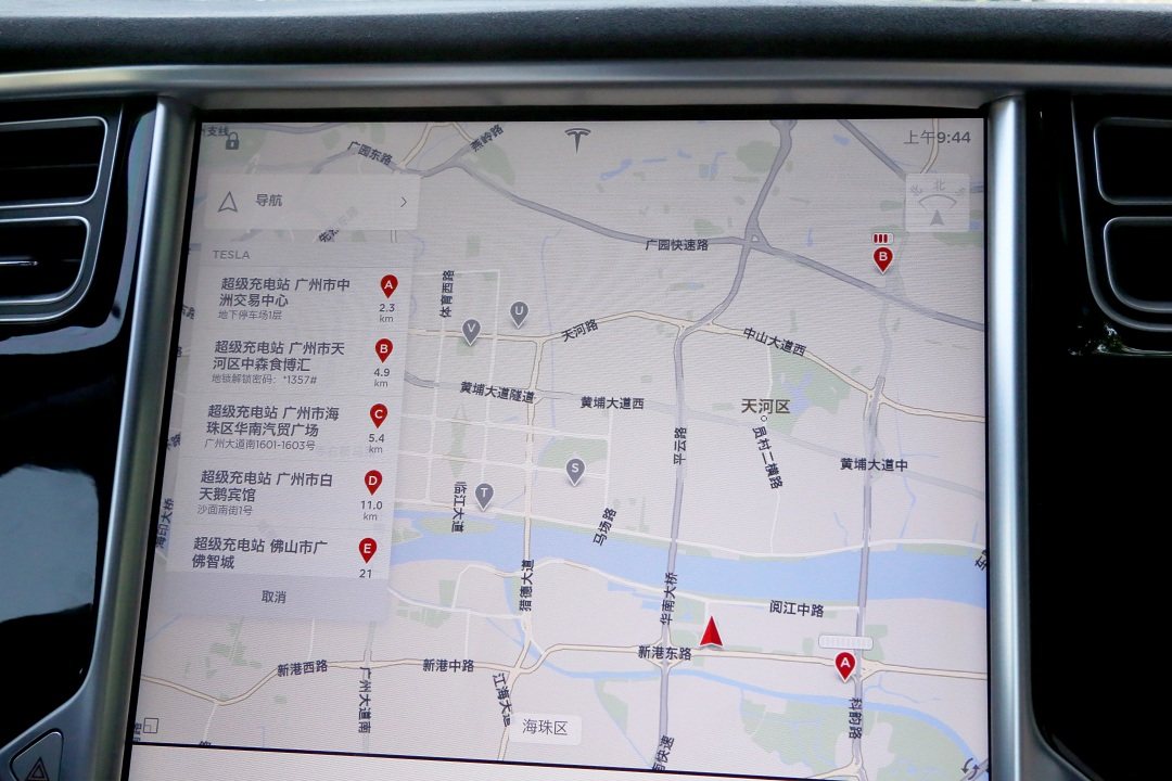 一辆纯电动车,相信大家最关心的是如何充电,最怕就是,不是在充电就是去充电的路上。然而假如你是特斯拉车主,完全不必担心这个问题,特斯拉拥有强大的超级充电网络,当你需要充电的时候,只需点击屏幕左上方红色箭头打开导航,然后点击右下那个电气按钮,17寸超大电容屏,盲操作也没问题。