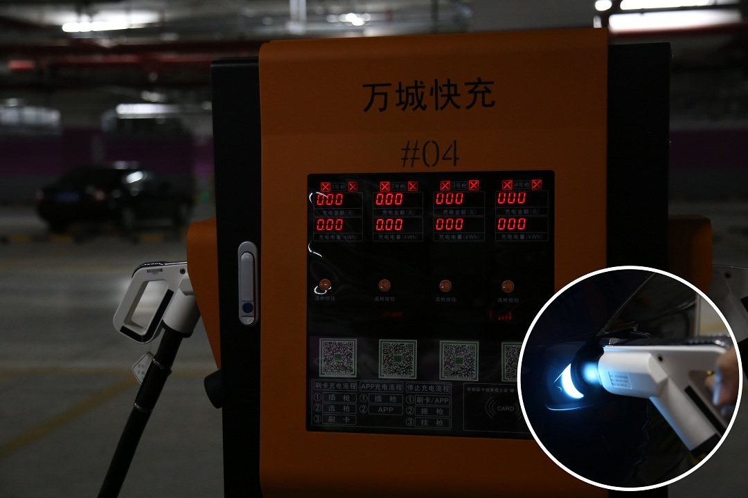 还有一个叫万城快充的电桩,插口不对,需要转换器,教授今天没带,准备不足请大家见谅,有机会再给大家展示。