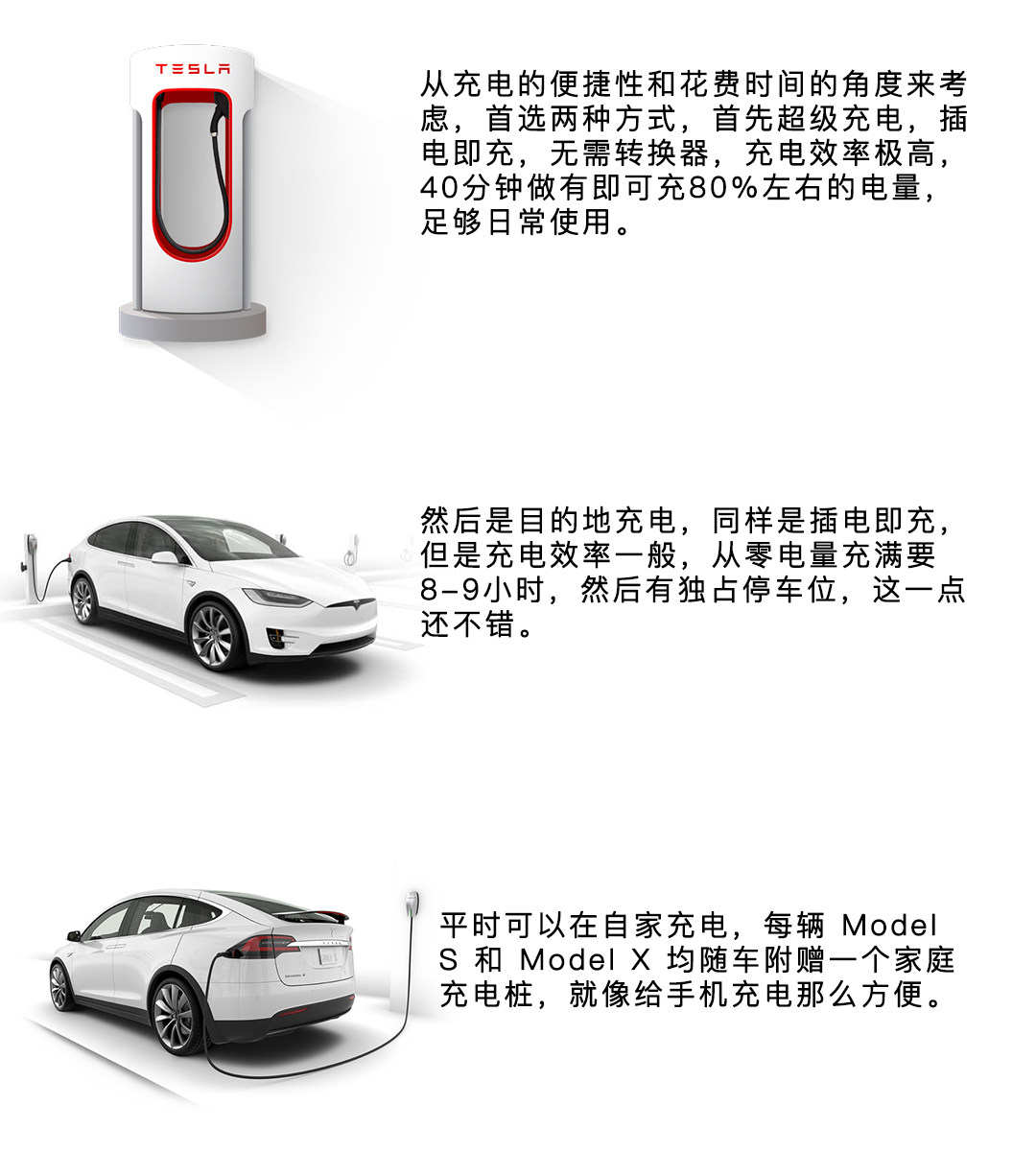 便利性,相信买得起特斯拉的消费者居住条件都不会差的,所以在家里充电是非常方便的,并且特斯拉有逐渐完善的充电网络,超级充电和目的地充电完全不用担心充电问题。