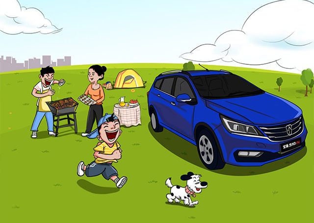 周末全家一起外出烧烤游玩,