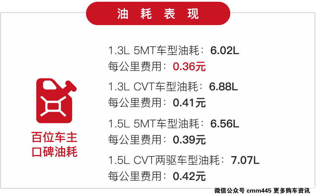 而且与之匹配的CVT变速箱,它除了在行驶过程中能有不错的平顺性之外,还能让发动机长时间在最佳工况下运转,从而提升燃油经济性。
