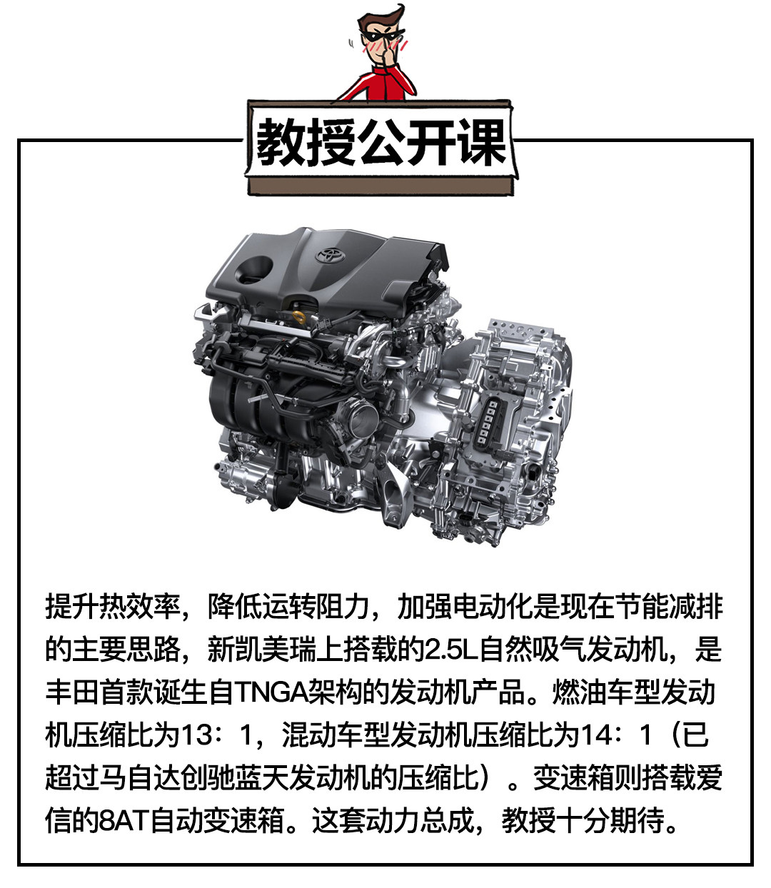 凯美瑞:我的前身大家都叫我佳美,我的车号称开不烂,入手几年后再卖二手照样很值钱,如今大家都在等着我正式投入市场,我的混动车型发动机热效率最高达到42%,这个数值可不是随随便便就能做到的。