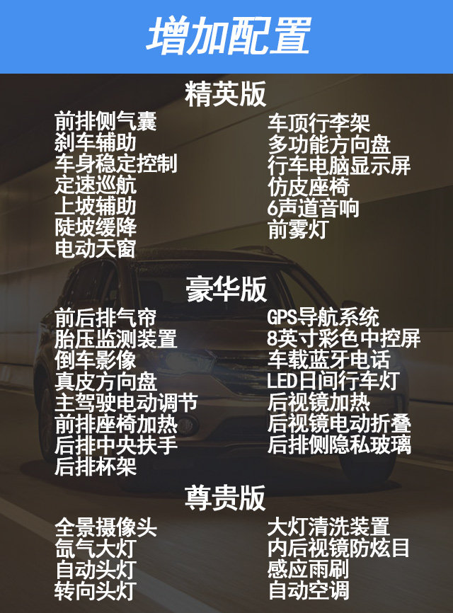 另外,235T 自动两驱精英版除了上述精英版的配置外,还有后排扶手、后排杯架和后排隐私玻璃,对后排乘客比较照顾。