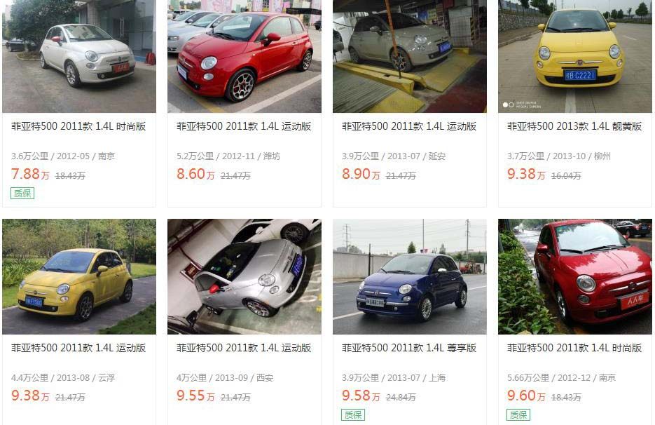 拥有如此多的特点,肯定是菲亚特(进口)-菲亚特500车型,这款车型目前在国内新车售价为20.98-26.18万,而且在售的车型还是12款的车型,所以显然买新车按照我们的逻辑是不划算的。