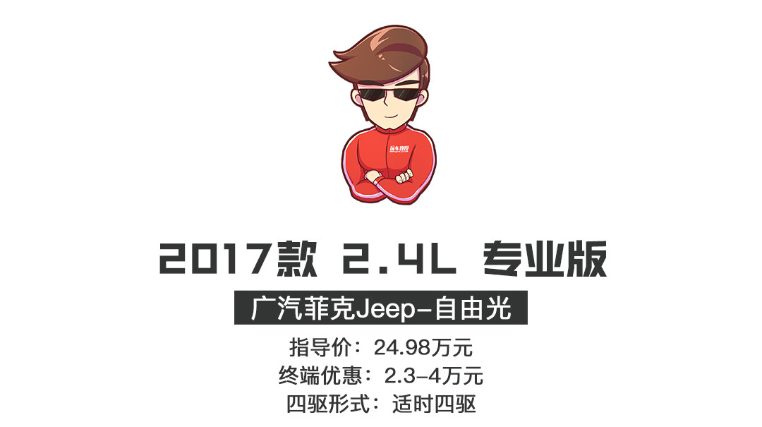 Jeep自由光最近新增了一个四驱车型,2.4L 专业版,成为了最便宜的自由光四驱车型,为什么推荐这个配置呢,主要是因为性价比,虽然是四驱车型中的低配,但是相较于中配车型而言,只是减配了电动后备厢、GPS导航、感应雨刷等无关痛痒的配置。